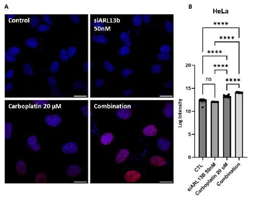 Supplementary Figure 6. siRNA-mediated depletion of ARL13B increased DNA damage upon carboplatin treatment.