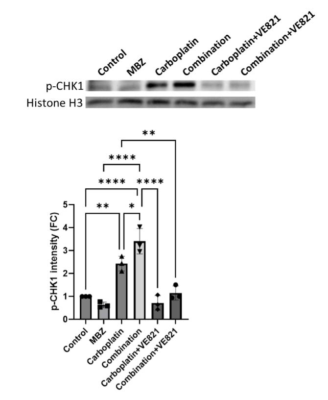 Supplementary Figure 7. The combination of mebendazole and carboplatin increases ATR-CHK1 DNA damage response.