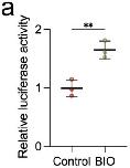 Extended Data Fig. 9 Control for TOP-flash assay. a, Data spread indicates relative Wnt activity in control embryos and in embryos treated with BIO. BIO is an inhibitor of GSK3, which should lead to an increase in Wnt activity. Each data point represents three replicates, and each condition represents three independent experiments. Data represent mean, error bars are s.d. Statistical analysis was performed using two-sided student t-test (**P = 0.0053, CI = 95%). |