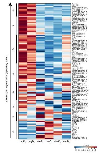 Fig. S2. List of genes remaining after the second screen in the transcriptomic analysis The genes remaining after the second screen are arranged in order of their specificity scores (see also Figs. 1e-f). |