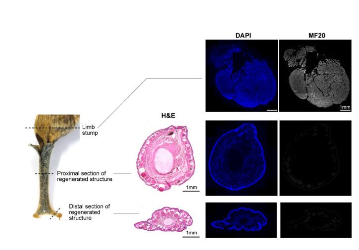 Fig. S12. Muscle staining using MF20. No muscle was observed within the regenerated limb structures of Tg individuals. |