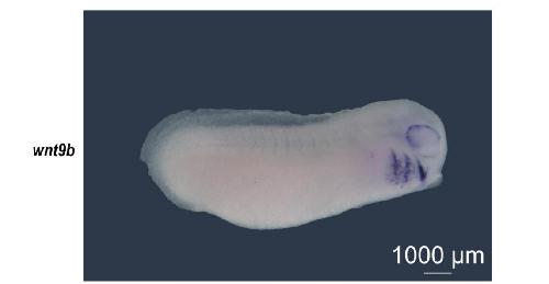 Fig S6 wnt9b expression pattern in X. tropicalis at embryonic stage 28, related to Figure 6. wnt9b was highly expressed in ba and around the eyes. |