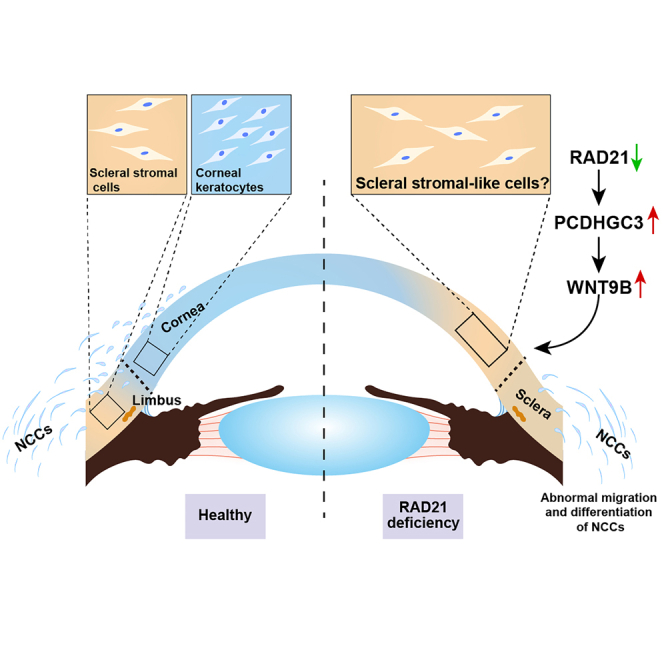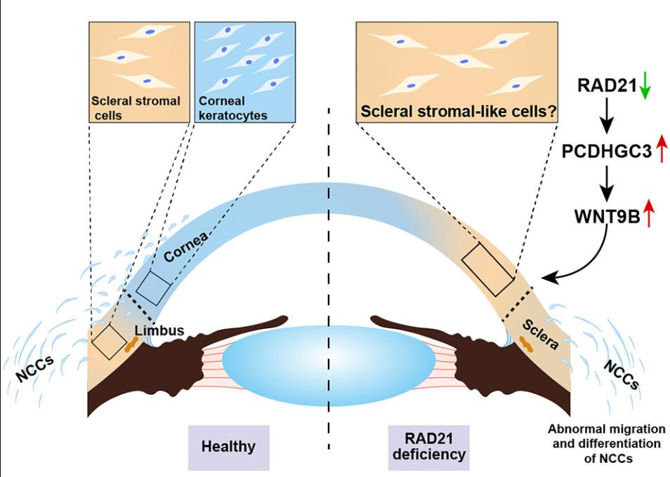 RAD21 deficiency drives corneal to scleral differentiation fate switching via upregulating WNT9B.