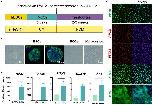 Figure 1. Differentiation of corneal keratocytes from hESCs (A) Schematic representation of the methodology employed to induce the differentiation of hESCs into NCCs and subsequently into corneal keratocytes. NCCs were generated by incubating hESCs in NDM supplemented with 4 ng/mL bFGF and 1 μM RA for 5 days. To differentiate into keratocytes, the medium was switched to KDM containing 10 ng/mL bFGF for 2–3 weeks. (B) Fluorescence microscopy images depicting hESCs, NCCs, and keratocytes. Scale bar = 100 μm. The immunostaining staining of pluripotency markers OCT4 and NANOG in hESCs showed positive. Nuclei were counterstained with DAPI. Scale bar = 200 μm. (C) Representative immunofluorescence staining showing the expression of NCC markers, including P75, PITX2, AP2β, and SOX10. Nuclei were counterstained with DAPI. Scale bar = 100 μm. (D) qPCR analysis of gene expression of NCC markers. n = 3. (E) Representative immunofluorescence staining of keratocyte markers KERA and LUM. Nuclei were counterstained with DAPI. Scale bar = 100 μm. (F) qPCR analysis of gene expression of keratocyte markers. n = 3. Data are presented as mean ± standard deviation. ∗p < 0.05, ∗∗p < 0.01, ∗∗∗p < 0.001, ns, no significance. |