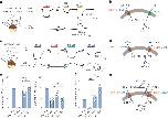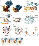 Fig. 6. The outward-open structure of GLMP–MFSD1.a, Cryo-EM map of GLMP–MFSD1His–Ala. The N- and C-domain of MFSD1 are coloured yellow and orange, respectively. GLMP is coloured blue. b, Topology diagram of MFSD1 and GLMP. The N- and C-termini are labelled, and the secondary structure elements are numbered. c, Cartoon representation of GLMP–MFSD1 with top view of MFSD1. The numbering of TMs is indicated. Sugar modifications (acetylglucosamine (NAG)) identified on GLMP are coloured pink. d, Additional binding-site density was found for the GLMP–MFSD1 data set in the presence of the dipeptide with His–Ala (MFSD1His–Ala) compared with the apo dataset (MFSD1apo). The map of MFSD1His–Ala is shown as light blue surface and that of the apo dataset as grey mesh (light grey). Both the maps are depicted at σ = 6. The residues surrounding the extra density are labelled. e, The electrostatic surface potential (expressed as kT/e, with k, Boltzmann constant; T, temperature in K; and e, elementary charge), calculated with the APBS plugin in PyMol, highlights the bipolar character of the binding site. The residues that were mutated in this study are framed in bold black. f, Binding of the protonated dipeptide His+–Ala (green) as observed after 500 ns of MD simulations. Hydrogen bonds are indicated as dashed black lines, and residues used for mutational studies are framed in bold black. g, Effect of mutations of binding-site residues on uptake of His–Ala or His-Ser compared with MFSD1WT. The uptake rates are given as mean ± s.d. for n = 8 (MFSD1WT) or n = 4 (mutants) of independent experiments. h, A schematic of transport of dipeptides (blue (N-terminus) and red (C-terminus) sticks) by the GLMP–MFSD1 complex. The cytoplasmic gate formed by residues N157, F173, W373 and Y369 is shown (shown as a grey bar) as well as residues E150 and R118 involved in peptide coordination. The source numerical data are available in the source data. |