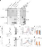 Fig. 5. MFSD1 has a broad dipeptide selectivity.a, Heavy isotope tracer approach used to monitor Leu–Ala transport. b, Representative LC–MS chromatograms of ≥5 independent experiments. The amount of standard (green lines) was 3.9 pmol for Leu(d3)–Ala and 15.6 pmol for Leu(d3) and Ala. c, Relative quantification of the chromatographic peak area of Leu(d3)–Ala, Leu(d3) and Ala in extracts from mock and MFSD1–GLMP oocytes, incubated or not, with, 10 mM Leu(d3)–Ala for 20 min at pH 5.0. The data are means ± s.e.m. of four oocytes from a representative example of three independent experiments (two-tailed unpaired t-tests). *P ≤ 0.05, **P ≤ 0.01 and ***P ≤ 0.001. d, Absolute quantification of Leu–Ala uptake. The data are means ± s.e.m. of 17 oocytes from two oocyte batches. In one experiment, some oocytes were treated with the branched-chained amino acid transaminase inhibitor BAY-069. The Lys–Ala currents from Fig. 2c were divided by the Faraday constant and plotted with the same scale (grey bar) to allow comparison with Leu–Ala uptake. e, A model accounting for the LC–MS/MS data. f, Representative LC–MS chromatograms of eight MFSD1–GLMP oocytes from two batches incubated for 23 min at pH 5.0 with 10 mM Glu–Ala. g, Quantification of Ala in oocytes incubated for 23 min with the indicated dipeptides (10 mM). The means ± s.e.m. of three to four oocytes are depticted. The red dotted line at mid-height of the Ala–Ala bar is shown for comparison with other substrates. Two-tailed unpaired t-tests relative to MFSD1–GLMP oocytes incubated in dipeptide-free buffer; *P ≤ 0.05, **P ≤ 0.01 and ***P ≤ 0.001. The source numerical data are available in the source data. |