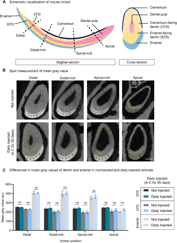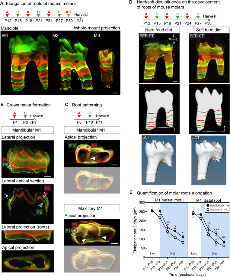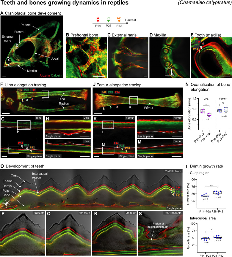 Spatiotemporal monitoring of hard tissue development reveals unknown features of tooth and bone development.