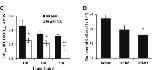 Fig 4. Nikkomycin Z (NZ) exposure increases B. dendrobatidis (Bd) sensitivity to osmotic lysis. B. dendrobatidis alone (A) or with 50 μM NZ (B) are stable in isotonic conditions (APBS), but experienced cellular swelling followed by osmotic lysis in hypotonic conditions (dH2O). Swelling and subsequent lysis are indicated by an initial increase followed by a decrease in OD490 over a 210 min time course. In panels A and B, graphs are representative of three identical experiments for each condition. (C) The ratio of optical densities in dH2O compared to APBS indicates that osmotic lysis is significantly higher in NZ-treated cells (*p < 0.05, **p < 0.001 by unpaired, two-tailed Student's t tests). (D) Cell counts immediately prior to resuspension and 120 min after resuspension in APBS or dH2O indicate that cell numbers significantly decreased in the dH2O hypotonic environment (*p < 0.05 by unpaired, two-tailed Student's t test), but were not significantly changed upon resuspension in isotonic APBS (p > 0.05). Panels C and D show the mean ± SEM of three identical experiments. |