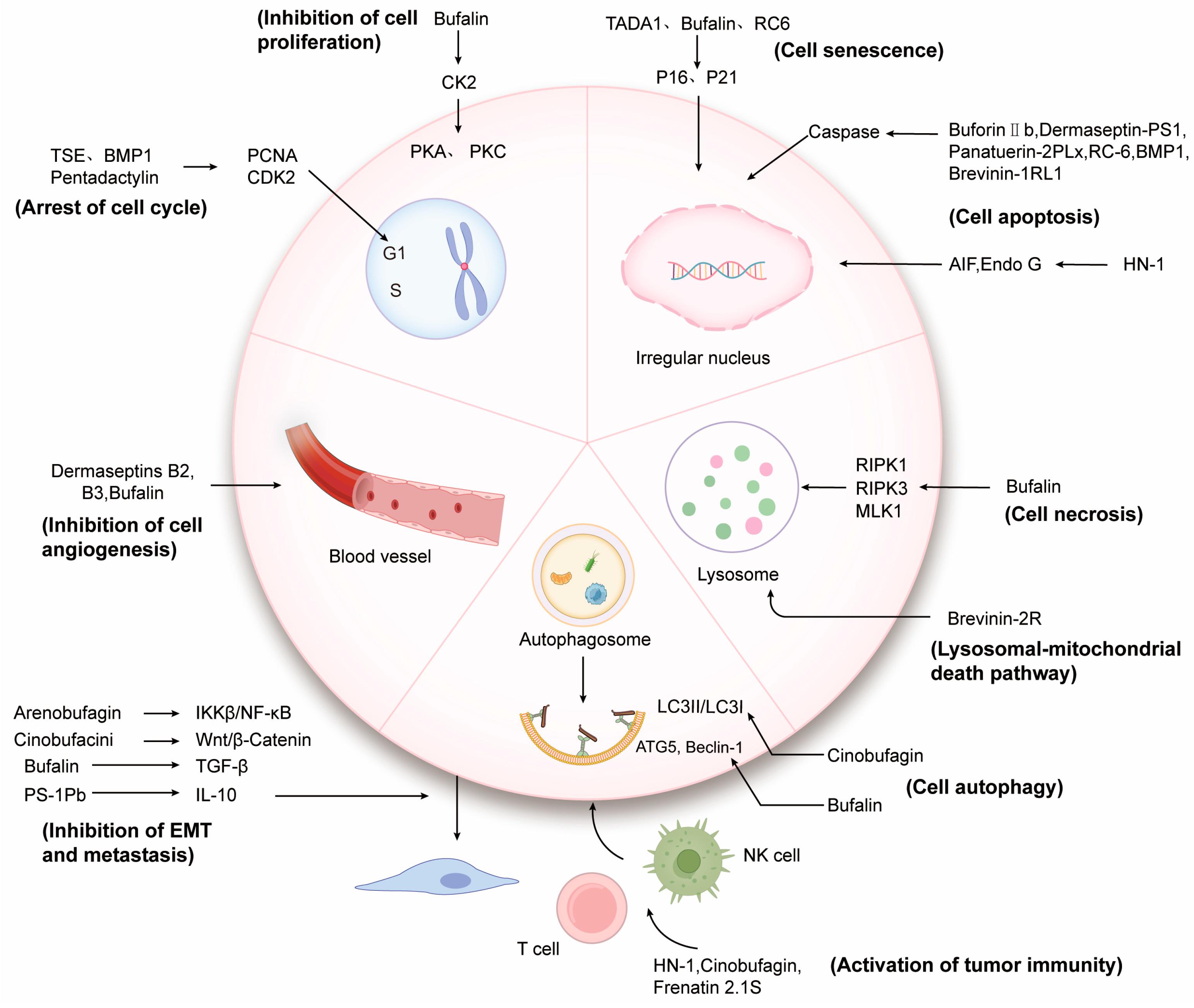 Figure 3. Mechanism of action of natural anticancer peptides and proteins of amphibian origin.