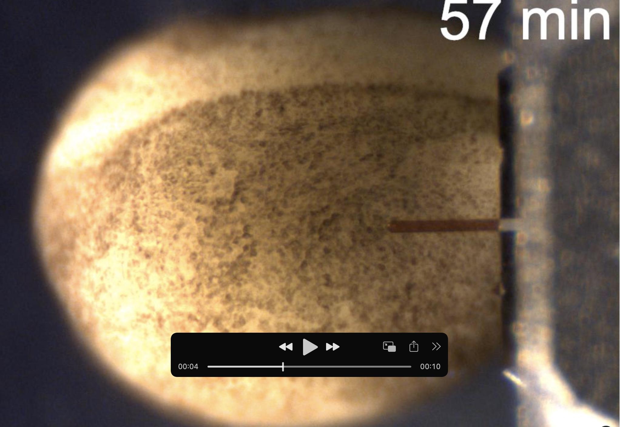 STILL FROM MOVIE S1. Repeated indentations of the neural plate. Dorsal view of an embryo during repeated indentations of the neural plate; anterior is to the left. Elapsed time (min) is shown at the top right. A snapshot of this process is shown in Figure 1c. |