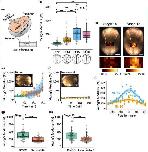 Elasticity of neural plates measured with atomic force microscopy (AFM). (a) Schematic of the AFM measurement. A devitellinized embryo is fixed on a plastic dish using a low-melting-point agarose gel. The surface of the neural plate (orange) is indented using a bead-attached AFM cantilever. The dashed line indicates the midline. Indentations are made in the presumptive anterior spinal cord. (b) Stiffness at stages 13–16: n = 99 indentations, 31 embryos (stage 13); 114 indentations, 36 embryos (stage 14); 75 indentations, 27 embryos (stage 15); and 67 indentations, 24 embryos (stage 16). Stiffness increased from stage 13 to stage 15 (pstage13–14 = 4.3 × 10−13, pstage14–15 = 1.1 × 10−9, pstage15–16 = .66). (c, d) Stiffness of the neural plate (c) and non-neural ectoderm (d), measured by repeated indentations of the same embryos (n = 4 each). The 0- and 150-min marks correspond approximately to stages 13 and 16, respectively. The insets show representative images of stage 15 embryos during the measurements. Anterior is to the left. The dashed lines indicate the cantilevers at the rest position. (e) Two-dimensional mapping of neural plate stiffness at stages 14 (left) and 15 (right). Anterior is to the top. Magnified views of the color-coded stiffness map are shown at the bottom. Scale bars: 250 μm. (f) A plot of stiffness along the mediolateral axis at stages 14 (orange) and 15 (blue), shown in (e). Zero, negative, and positive values correspond to the midline, left, and right sides, respectively. (g, h) Stiffness of the neural plate treated with blebbistatin (g) and latrunculin B (h); n = 24 indentations, 9 embryos (DMSO in g); 30 indentations, 10 embryos (blebbistatin); 31 indentations, 10 embryos (DMSO in h); and 36 indentations, 12 embryos (latrunculin B). Both treatments reduced neural plate stiffness compared with DMSO controls (pblebbistatin = 7.8 × 10−5, platrunculin B = 3.0 × 10−3). In (b), (g), and (h), the box and whiskers indicate the maximum, third quartile, median, first quartile, and minimum values of each group; data beyond the end of the whiskers (the upper limit of whiskers is 1.5 times the box length) are shown as outliers; a cross mark indicates the mean value. In (c), (d), and (f), the colored line and shaded areas indicate the locally estimated scattered smoothing regression and confidence interval of each embryo, respectively. p-values were calculated using the two-sided Wilcoxon rank-sum test (**p < .01; ***p < .001; n.s., not significant). p-values for pairwise comparisons were adjusted using Holm's method. |