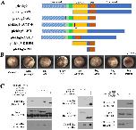 Figure 2. The PH domain is critical for Plekhg5 self-association. A) Schematicrepresentation of the deletion mutants used in the co-IP assay. B) The deletion mutants havedifferent abilities to induce apical constriction. While removal of the C-terminal sequences (Cmutant) does not impair the ability of the mutant to induce apical constriction, deletion of theother domains leads to reduction (in the case of the DHPH mutant) or loss of induction of apicalconstriction by the mutants. The experiments were repeated three to five times, with the totalnumber of embryos displaying apical constriction as follows: control, 0/44 embryos; 0.1 ngplekhg5, 61/61 embryos; 1 ngN, 0/39 embryos; 0.1 ngC, 61/61 embryos; 1ngC(T>F), 0/60embryos; 1 ngPH, 0/39 embryos; 1 ngGEF, 0/51 embryos and 1 ng DHPH, 35/72 embryoswith weak constriction. C) Left panel: the co-IP studies indicate that deletion of the PH domainabolishes Plekhg5 self-association whereas deletion of the other domains does not affect association of the mutants with Plekhg5(T>F). Middle panel: deletion of the GEF/DH domaindoes not affect binding of the mutant to Plekhg5(T>F), and the isolated DHPH domain issufficient for association of the mutant with Plekhg5(T>F). Right panel: the isolated PH domainis capable of binding to Plekhg5(T>F), but not the Plekhg5 mutant with the PH domain removed.The experiments were repeated three times. |