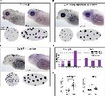 Figure 3. Enucleation triggers substantial changes in the expression of tyrp1, tyr and pmel but not mitf in perioptic melanophores. At stage 40, tyrp1, tyr, and pmel are expressed by a small number of perioptic melanophores as assessed by WMISH, whereas mitf expression is rarely visible in individual cells by this method (circular insets show perioptic region;