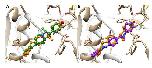 Figure S9. (A) Overlap between crystallographic (in orange) and docked (in green) poses of ifenprodil. (B) Overlap between the crystallographic pose of ifenprodil (in orange) and the docked pose of trans-OptoNAM3 (in purple). |