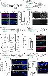 Fig. 3. Neuroinflammation enhances the proliferative response of Xenopus Müller cells to injury at permissive stages. (A) Procedure used in (B). Tadpoles at a permissive stage were intraocularly injected with 25 mM CoCl2 and processed 2 weeks later for photoreceptors immunolabeling. (B) Retinal sections labeled for opsins (cones) or rhodopsin (rods). (C) Procedure used in (D) and (E). CoCl2-injected or rho crispant tadpoles and their respective controls were processed at a permissive stage for immunolabeling of microglia on flat-mounted retinas. (D and E) Quantification of IB4-positive and representative images. (F) Procedure used in (G). Tadpoles at a permissive stage were injected with CoCl2, and their retinas were dissected for qPCR analysis. (G) Expression of inflammatory genes. Shown are −ΔCt values of paired samples. Each dot represents one biological replicate. *P < 0.05; **P < 0.01 (Wilcoxon matched-paired test). (H) Procedure used in (I) and (J). Tadpoles at a permissive stage were injected with CoCl2 and processed 1 week later for immunolabeling. (I and J) Proportion of PCNA-positive cells (proliferative cells) among Yap-expressing ones (Müller cells). Shown in (J) are representative images of retinal sections. (K and L) Procedures used in (M) and (N) and (O) and (P), respectively. Tadpoles injected with CoCl2 (K) or rho crispant tadpoles (L) were soaked in PLX3397 plus Dex solution for 1 week starting 1 day before the CoCl2 injection or for 5 days as indicated and processed for immunolabeling. (M to P) Quantification of PCNA-positive, IB4-negative cells (proliferative Müller glia). Shown in (N) and (P) are representative images of sections. White boxes in (N) are enlarged on the right. White and yellow arrows point to PCNA-labeled and IB4-labeled cells, respectively. Nuclei are counterstained with Hoechst. Except in (G), data are represented as means ± SEM, and each point represents one retina. **P < 0.01; ***P < 0.001 (Mann-Whitney test). GCL, ganglion cell layer; INL, inner nuclear layer; ONL, outer nuclear layer. (C) and (F) created using BioRender.com. |