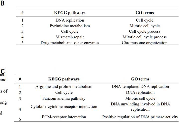 (C) The top 5 KEGG pathways and GO terms enriched among