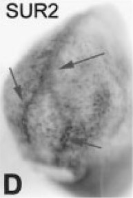 frontal arms of the hatching gland Y shape. D: SUR2 is present in the