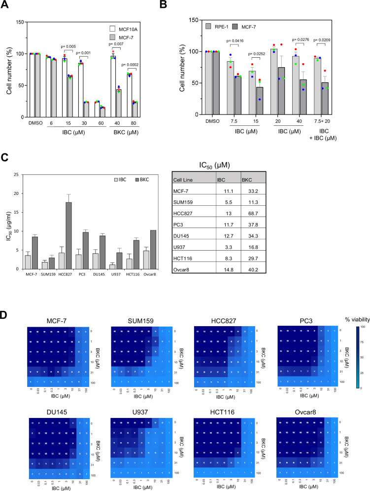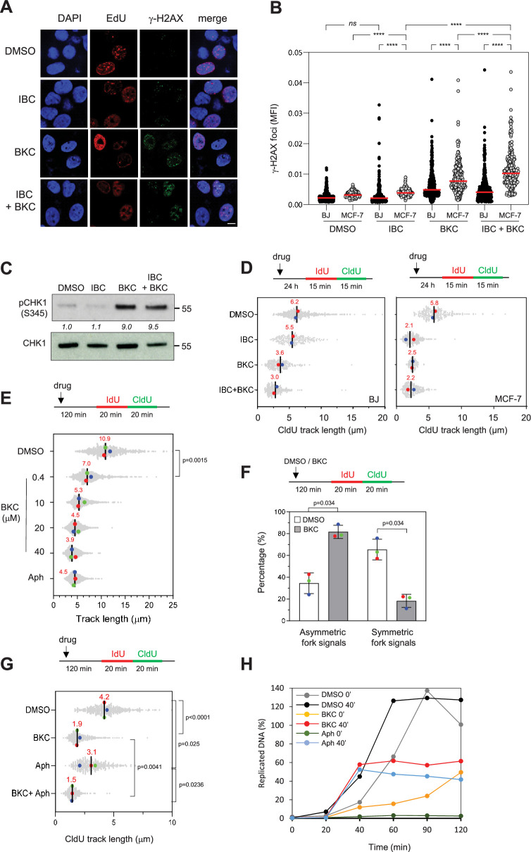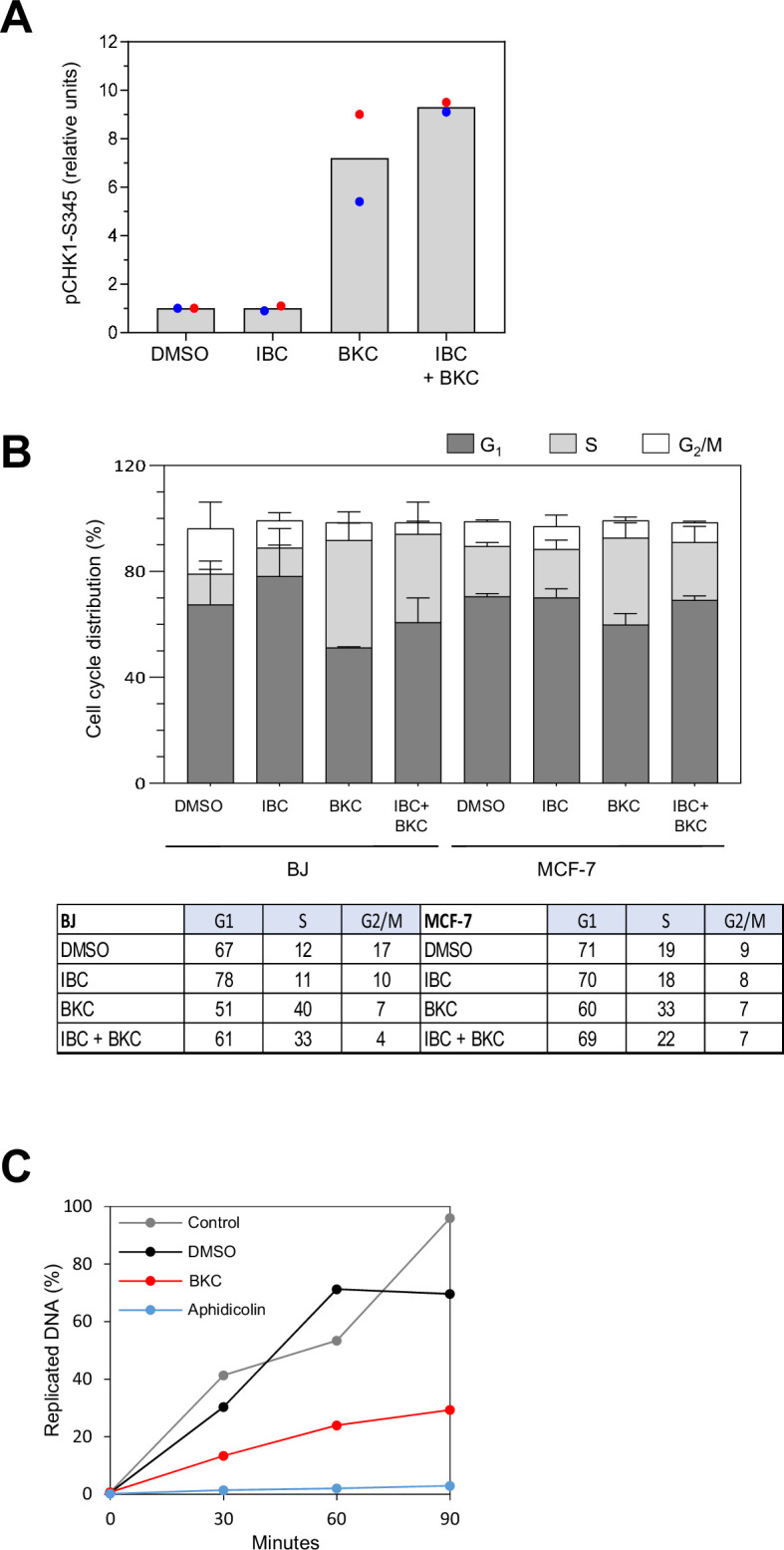Cancer cells display high levels of oncogene-induced replication stress (RS) and rely on DNA damage checkpoint for viability. This feature is exploited by cancer therapies to either increase RS to unbearable levels or inhibit checkpoint kinases involved in the DNA damage response. Thus far, treatments that combine these two strategies have shown promise but also have severe adverse effects. To identify novel, better-tolerated anticancer combinations, we screened a collection of plant extracts and found two natural compounds from the plant, Psoralea corylifolia, that synergistically inhibit cancer cell proliferation. Bakuchiol inhibited DNA replication and activated the checkpoint kinase CHK1 by targeting DNA polymerases. Isobavachalcone interfered with DNA double-strand break repair by inhibiting the checkpoint kinase CHK2 and DNA end resection. The combination of bakuchiol and isobavachalcone synergistically inhibited cancer cell proliferation in vitro. Importantly, it also prevented tumor development in xenografted NOD/SCID mice. The synergistic effect of inhibiting DNA replication and CHK2 signaling identifies a vulnerability of cancer cells that might be exploited by using clinically approved inhibitors in novel combination therapies.