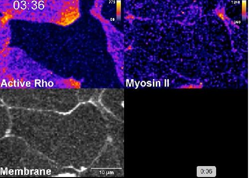 the field of view. The Active Rho, Myosin II, and F-actin intensities were normalized to the