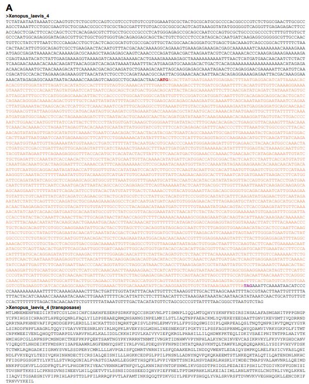 sequence of the transmembrane protein 111 (tmem111.S) gene. The highlighted red