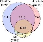 Figure 3. Comparative analysis of ChIP-seq data reveals much fewer TR-bound genes in the tail compared to the limb and intestine at the onset of metamorphosis. Venn diagram analysis was performed for TR-bound genes as obtained from ChIP-seq data for the tail, intestine and hindlimb of premetamorphic tadpoles treated with or without T3. Note that most TR-bound genes are common among the organs. The tail has the smallest proportion of unique TR-bound genes (26 out of 1393 or 2%). The ChIP-seq were performed on organs pooled from multiple premetamorphic tadpoles at stage 54 with or without T3 treatment. See (57) for more details. |