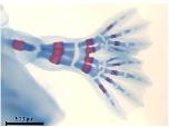 Supplementary Figure 4: Ectopic hindlimb skeletal staining. Individual from Figure 4C, stage NF55). There is a single femur, two fibulae and one central tibia, four tarsal bones and two complete hindfeet, with the two copies of digit 1 (hallux) adjacent. Viewed from the dorsal side |