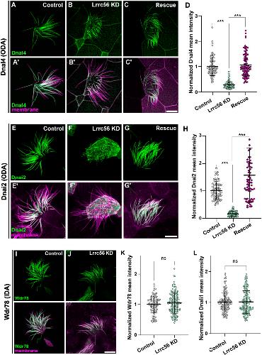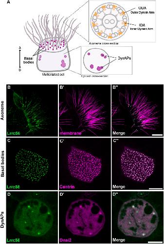 Physical and functional interaction of Lrrc56 and Odad3 is required for deployment of axonemal dyneins in vertebrate multiciliated cells.