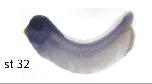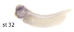 efna3 (ephrin A3) gene expression in X. laevis embryo, assayed whole-mount via situ hybridization (WISH) at NF stage 32, lateral view, anterior left, dorsal up. |
