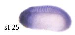 efna4 (ephrin A4) gene expression in X. laevis embryo, assayed whole-mount via situ hybridization (WISH) at NF stage 25, lateral view, anterior left, dorsal up. |
