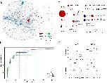 Fig. 5. Interaction network between genes differentially expressed. A) Network of KEGG pathways. B) Cumulative density of the number of connections per node. C) Subnetworks of nodes corresponding to differentially expressed genes directly connected. D) RT-qPCR validation of the expression following T3, CORT and T3+CORT treatments of 4 genes selected from the subnetwork panel C. Box plots represent the fold changes (n = 10/treatment condition), and box plots with the same letter are not significantly different (p < 0.05; Mann-Whitney test). The size of nodes is proportional to the number of connections they have with other nodes. CTRL = control; T3 = 3,3',5-triiodothyronine; CORT = corticosterone; T3+CORT = 3,3',5-triiodothyronine + corticosterone. |