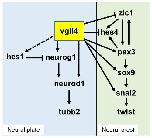 Figure 11. Proposed model showing the role of vgll4 in neuronal differentiation and neural crest formation in Xenopus embryos. The model integrates gain- and loss-of-function data from the present study and data from the literature (see text). In the neural plate, vgll4 stimulates neurog1 expression upstream of neurod1 and tubb2. Vgll4 might also directly stimulate neurod1 expression. A possible interaction through hes1 stimulation is shown as a dashed line. Vgll4 stimulates pax3 expression during neural crest formation while inhibiting zic1 and hes4 (hairy2) expression. Sox9 and snai2 can be activated by vgll4 or as a consequence of pax3 stimulation by vgll4. |