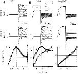 Figure 4. . Effects of MTSES on WT HERG (A), I583C (B) and W585C (C). The format of this figure is the same as that in Fig. 3. (A) WT HERG recorded in 2 mM [K]o, activated by 1-s depolarization pulses to 20 mV, tail currents recorded at −80 mV. (B) I583C recorded in 98 mM [K]o, activated by 1-s depolarization to 20 mV, tail currents recorded at −80 mV. (C) W585C recorded in 98 mM [K]o, activated by 1-s depolarization to 20 mV, tail currents recorded at −120 mV. |
