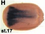 ror2 (receptor tyrosine kinase-like orphan receptor 2) expression in Xenopus laevis, NF stage 17 embryo, dorsal view, assayed by in situ hybridization. |