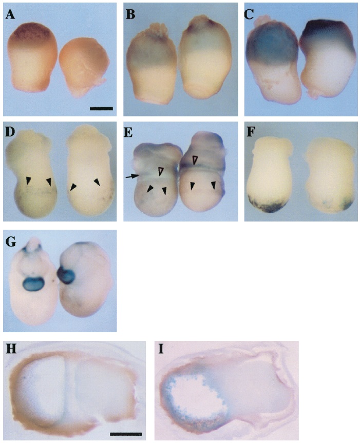 bottom end of these figures. Embryos in (D,E,F,G) are the sibling