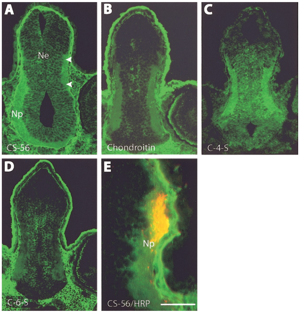expressed at higher levels in the neuropil than in the neuroepithelium. (C) Chondroitin-4-sulfate is