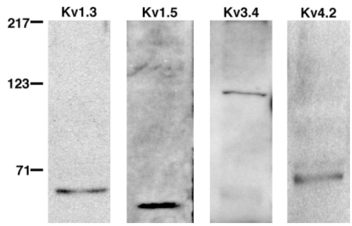 against mammalian Kv subunits. Molecular weights are based on