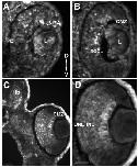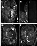 head and optic nerve are brightly labelled. D: Almost no labelling is