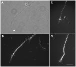 a filopodia. B: The Kv1.3 channel antibody labels the axon abundantly,