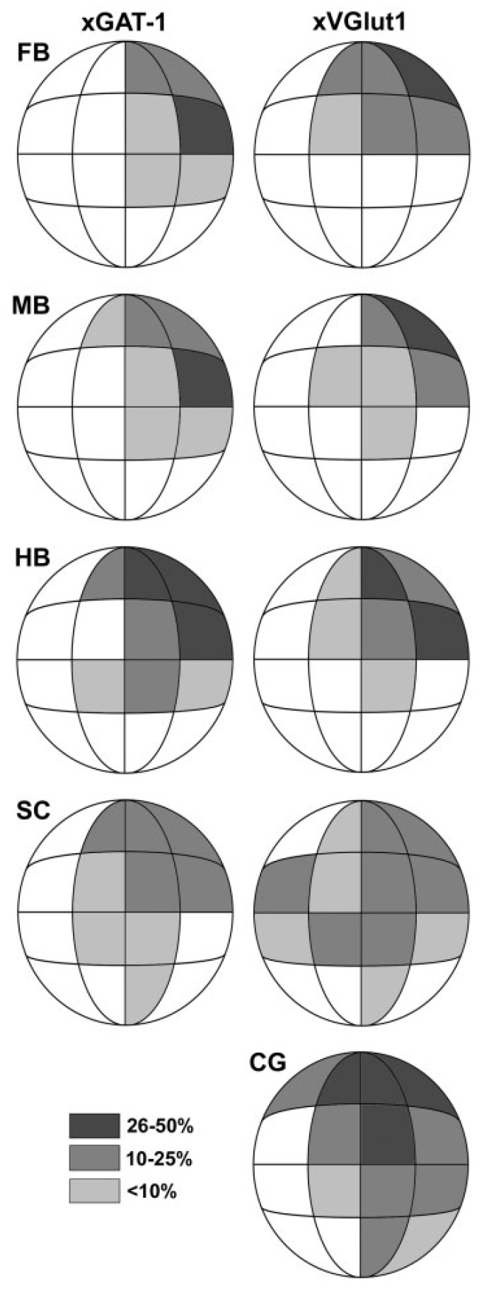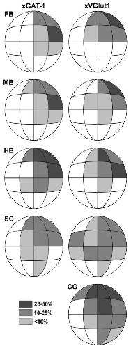 to tissue expressing either xGAT-1 (left column) or xVGlut1 (right