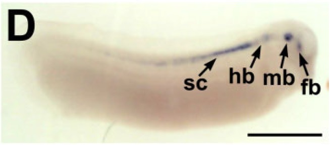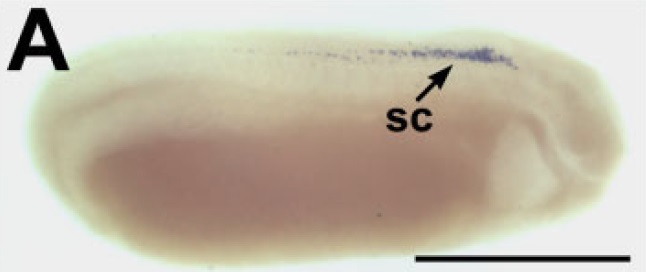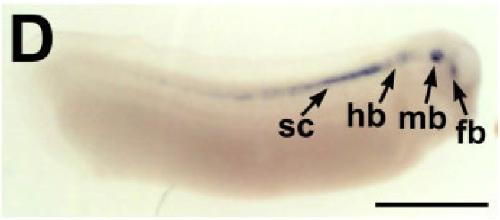 mb, midbrain; ol, olfactory placodes; sc, spinal cord. Scale bar