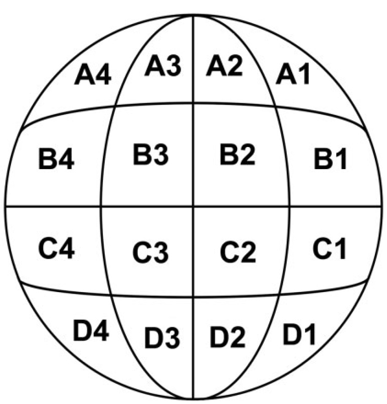 Fig. 1. Schematic of the blastomeres of a 32-cell stage Xenopus
