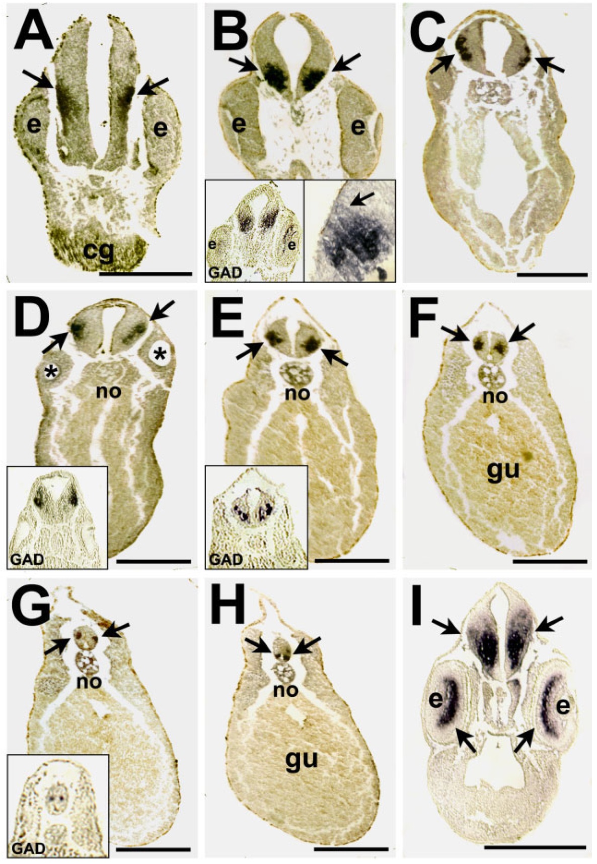 hybridized with the antisense GAD probe. A: Anteriormost xGAT-1