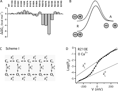 Figure 10. (A) Changes in the free energy of voltage sensor activation produced by different mutations (. |