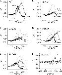 Figure 8. Effects of S4 mutation on the equilibrium for voltage sensor activation. (A) Mean log(PO)-V relations in 0 Ca2+ for WT(○), R207Q (▵), R207E (▴), and R210C (□). Mutant curves are shifted to more negative voltages, consistent with an increase in the equilibrium constant for voltage sensor activation (J0) in the HA model (lines, Table I parameters). (B) Normalized Q-V relations for WT and R207Q in 0 Ca2+ measured with admittance analysis from single experiments (see MATERIALS AND METHODS). Curves are fit with Boltzmann functions (WT: z = 0.59 e, Vh = 132 mV; R207Q: z = 0.65 e, Vh = −146 mV). (C) Po-V relations and fits from A are plotted on a linear scale to show that mutants have a similar PO and voltage dependence when voltage sensors are fully activated (i.e., V > 0). (D) qa-V relations for WT and R210C in 0 Ca2+ together with HA model fits showing that the voltage dependence of R210C is consistent with a gating charge similar to the WT. (E) Log(PO)-V relations for R210 mutants in 0 Ca2+ (R210C [□], R210N [], R210E []). R210E was best fit at positive voltages by a Boltzmann function with a partial charge of 0.47 e (solid line). Dashed lines are Boltzmann functions with charge of 0.3 e, representing the value of zL for the WT. (F) τ(IK)-V relations for WT, R207Q, and R210C. Mutant curves are fit (lines) with a bell-shaped function τ(IK) = [δ4 + γ4]−1 at potentials where voltage sensors are fully activated. δ4 and γ4 represent forward and backward rates for the C4–O4 transition in the HCA model (Fig. 3 D) and are exponentially dependent on voltage with partial charges z(δ4) and z(γ4), respectively. |