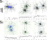 Figure 5. Reliability of a solution S1. Figures produced by 49 simulations, all performed with the same parameter set, but with different initial configurations and random number sequences. The figures are all similar, showing the reliability in which the parameter set determines the evolution of the system toward a unique interaction configuration. Each picture covers 30 × 30 μm.