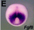 fgf8 (fibroblast growth factor 8) gene expression in Xenopus laevis embryo, assayed via in situ hybridization, NF stage 10, vegetal (blastoporal) view.