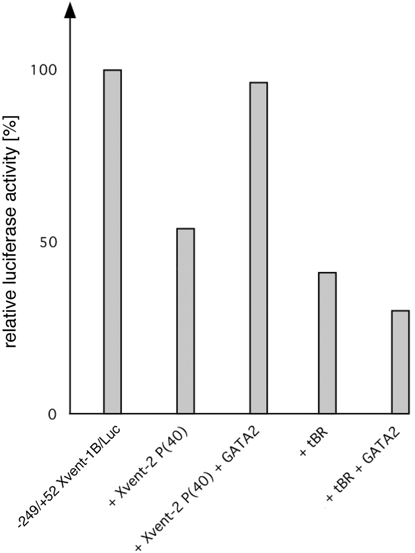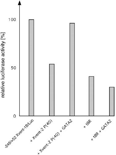 400 pg of Xvent-2 RNA or 50 pg of GATA-2 RNA into both dorsal blastomeres of four-cell stage embryos. Luciferase activity was measured at stage