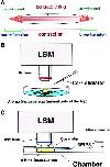 Fig. 1. Calcium imaging systems. (A) Schematic representation of the cleavage furrow and the F-actin structures. The two growing ends are the sites where the contractile ring structure is continuously formed. However, the middle region is where contraction occurs. It has been shown that rhodamine-WGA staining colocalizes with F-actin staining at the growing end of the cleavage furrow. SeeNoguchi and Mabuchi (2001) for detail. (B) Imaging of Ca waves was carried out using LSM at low magnification. Albino eggs were observed from the animal hemisphere to monitor the early cleavage furrow. Ca chelators were injected from the side during imaging. (C) Imaging of Ca puffs and Ca blips was carried out in a handmade chamber for scanning at high magnification using the LSM. In the chamber, the egg was compressed by a coverslip in order to flatten the cortex. The chamber has a slit at one side to introduce the glass needle for microinjection. |