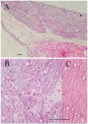 and poorly differentiated. (B) Detail of somitic disorganization.