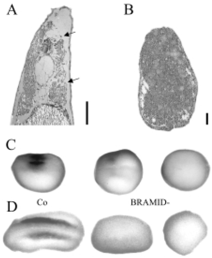 embryos injected with a mixture of 100 pg each of BRAMID– and